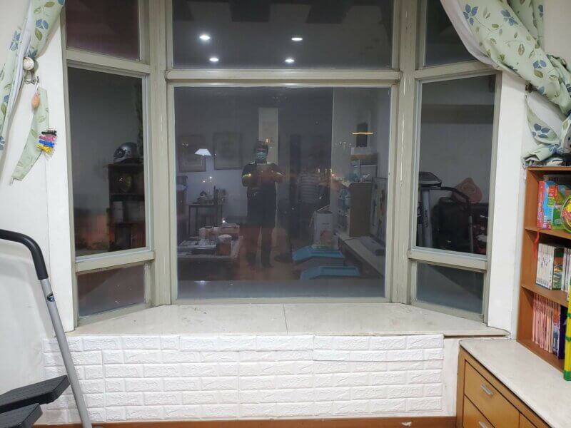 再來就是排除八角窗容易滲水的通病,廣角窗的兩側原本是推開窗,但業主反映推開窗的部分疑似容易進水,因此讓好室科技以封上玻璃的方式來儘可能地初步排除進水的問題。
