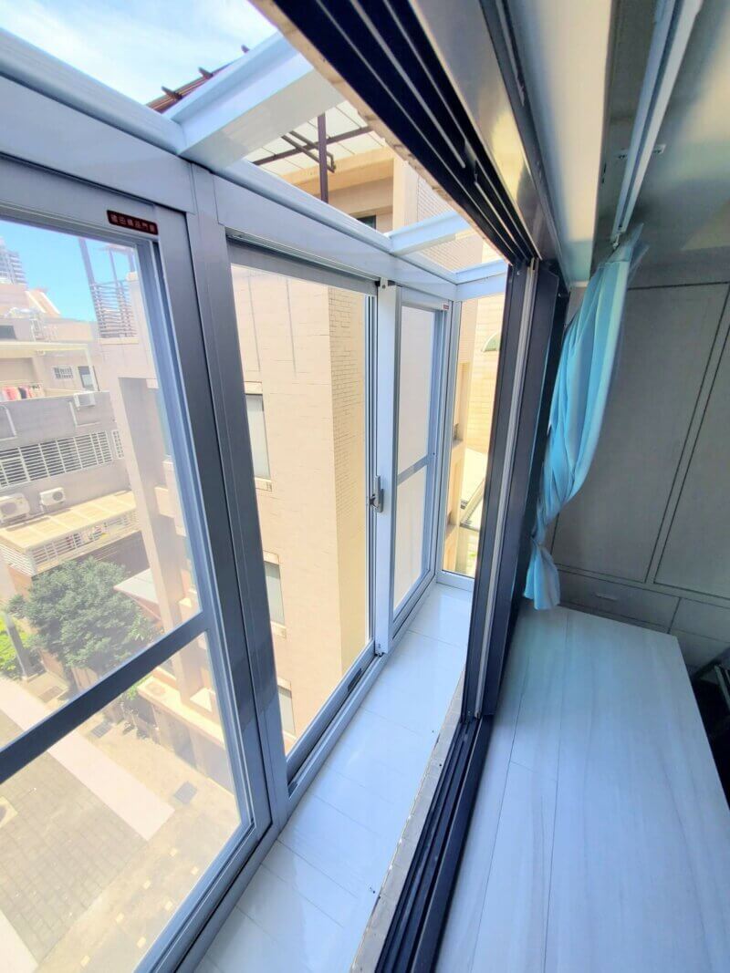 正面窗戶的部分則是選用經濟實惠的國田橫拉氣密窗。左右兩側的固定窗則是採用了專利框,看起還更加簡潔有力。