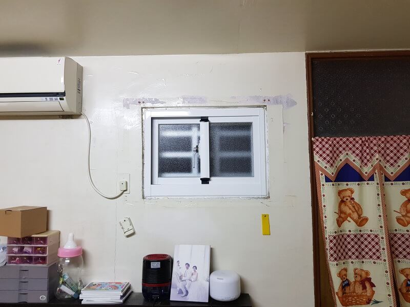 此外,並於舊式冷氣窗口以乾式施工方式裝設了一樘可完全內拆窗片的橫拉氣密窗,以避免因為戶外裝設的鋁合金穿梭管防盜窗的空間限制而影響後續的清潔與維護。