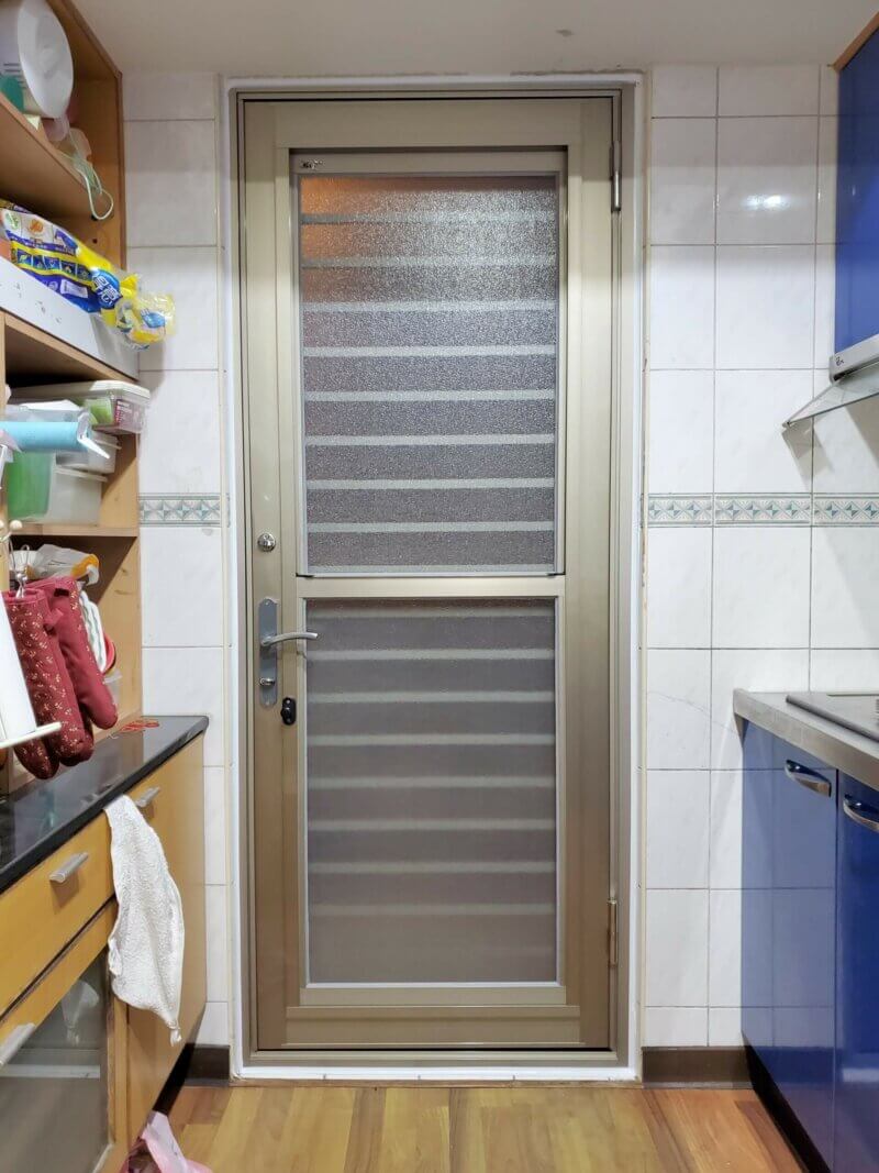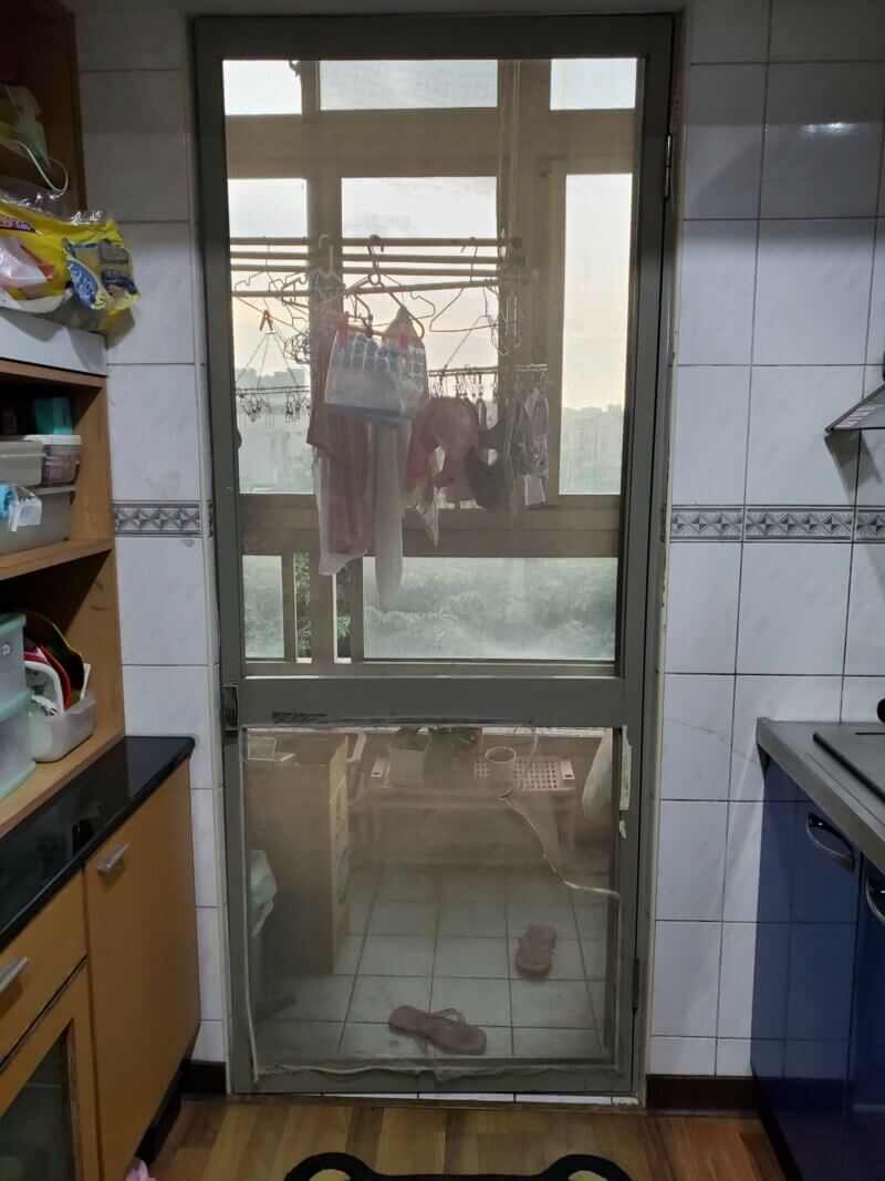 到客戶家先處理的就是廚房與陽台間門扉的問題,傳統的廚房陽台門,內側是一片紗門,外側又是另一片門扇,十分影響動線,進進出出使用起來非常地不方便。這次安裝的三合一通風門,採用乾式施工工法,不動泥作即可當日完工,完全不影響生活品質。使用的是專利免拆門框,在施工完成後,門洞開口面積減損可達到最小。三合一通風門,集紗門、通風、防盜功能於一扇門上,減法設計讓生活變得更輕鬆有趣多了!