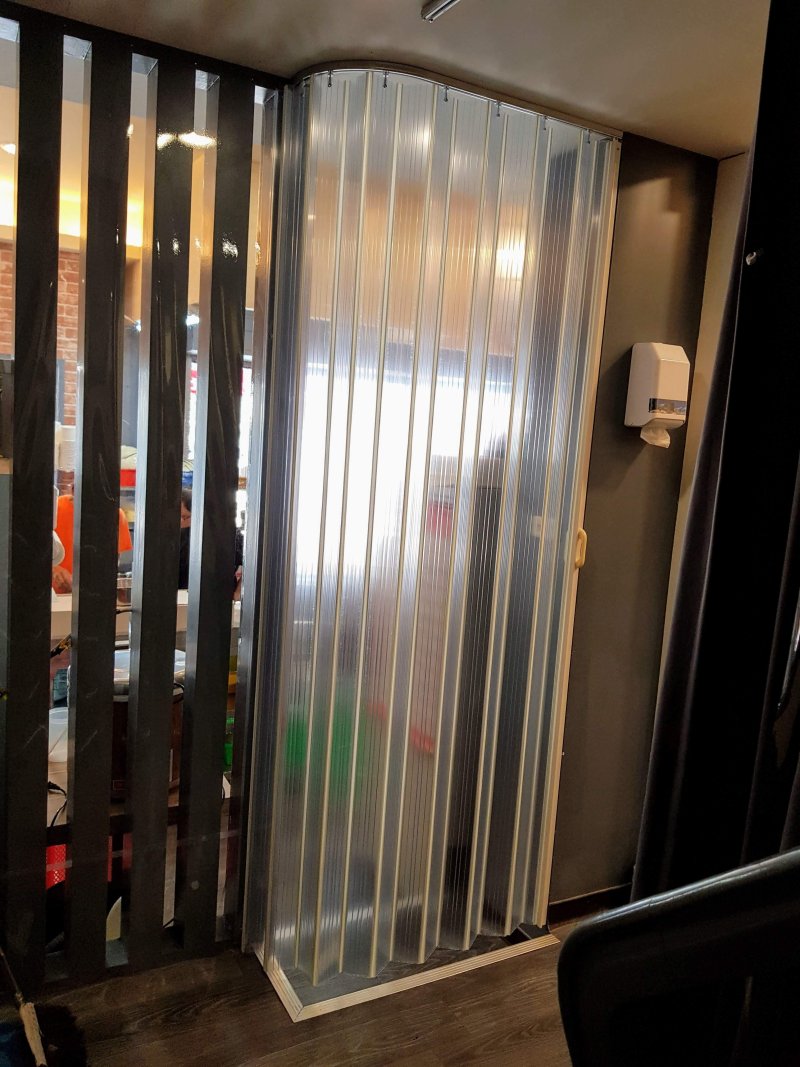 好室團隊的解答:透明 PVC 拉門 這一次,好室團隊受業主委託,為「高手魷魚羹永福店」量身規劃了透明 PVC 拉門系統。這不僅僅是一道隔屏,更是空間的呼吸口: