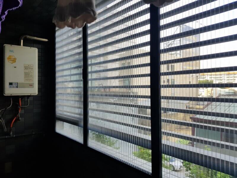 再來就是陽台的見光面屬於長方形,但先前的廠商在規劃折紗時未將紗窗受風面積與降低日後保養維護的成本納入考量,反正工作完成,款項收到走人就不關己事了。