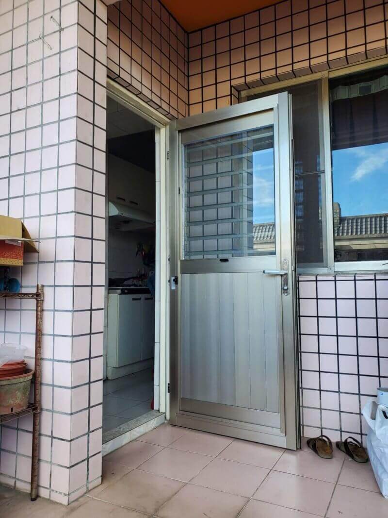 業主另外也追加了廚房門改向作業,在與好室科技的討論與建議之下,採用更換為上方為透明膠合玻璃,下方為封鋁板的三合一通風門的門片,此項目僅為更換門片並變更開向,有類似需求的朋友也可以參考看看唷!