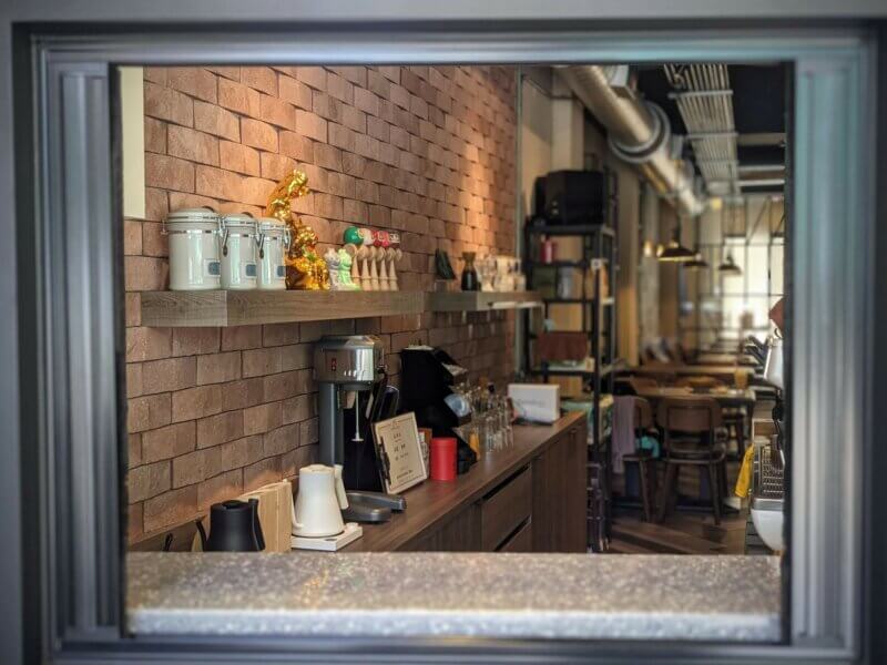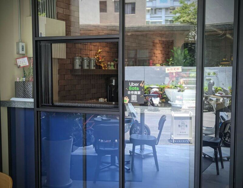因為是複合式經營的商業空間,有提供餐點的服務,所以設計師規畫了個出餐口。業主希望出餐口能夠有兼具透視、防蚊蟲、空調節能的作用。