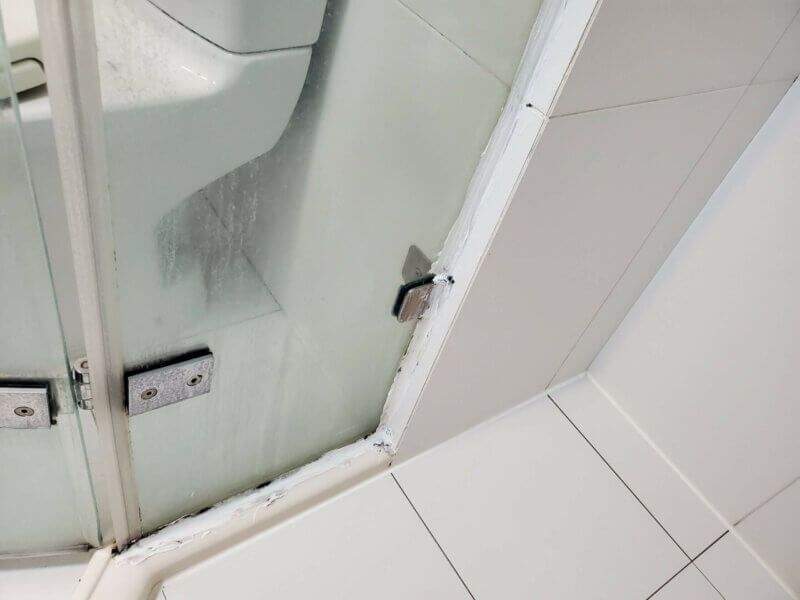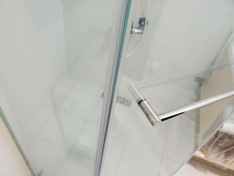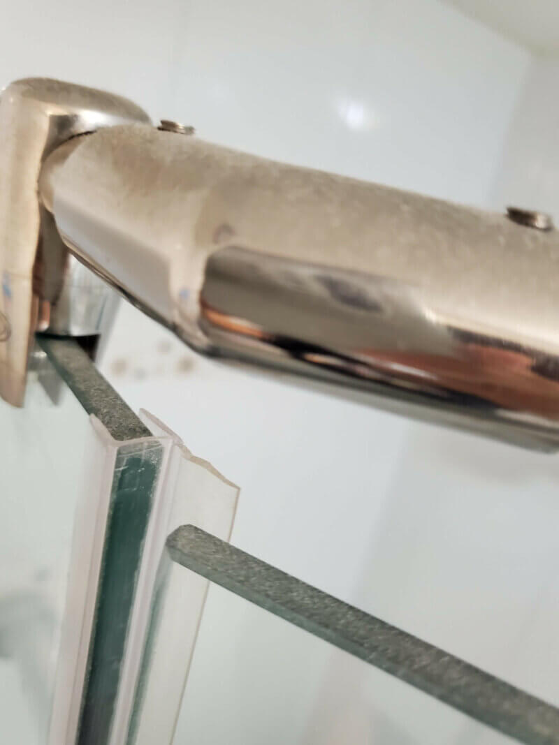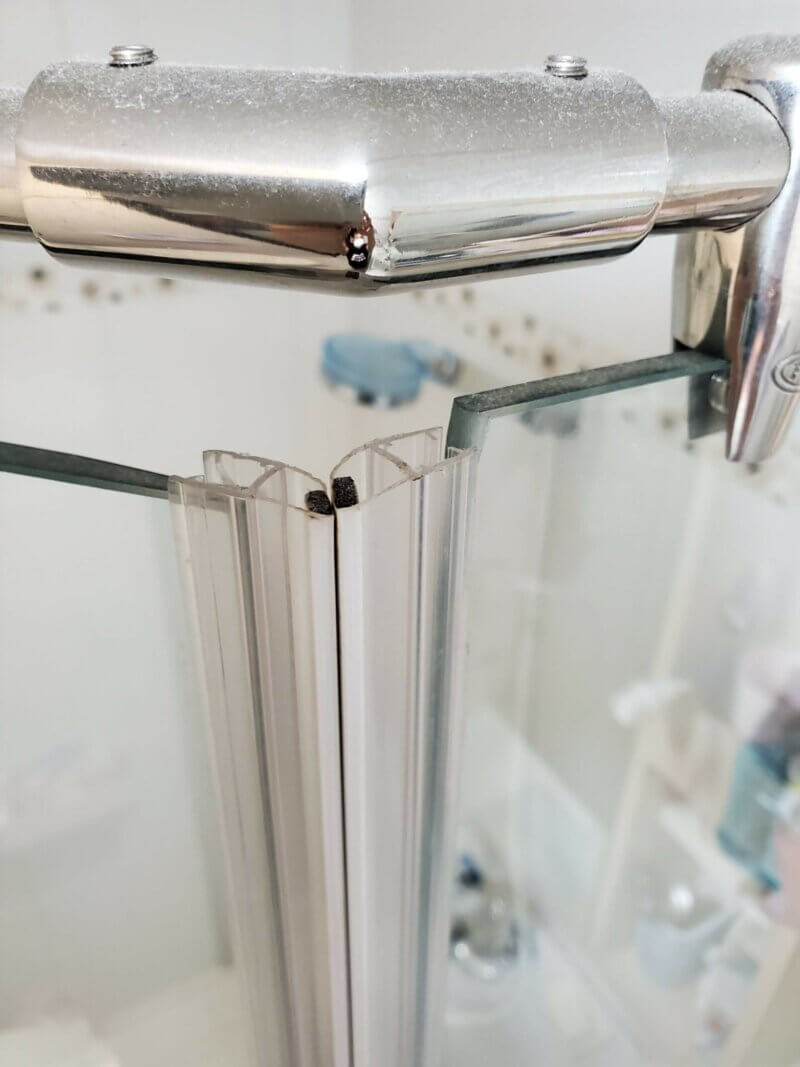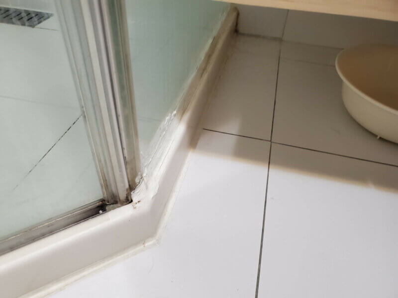 客戶家中浴廁的乾濕分離無框淋浴拉門有更新止水條與發霉矽利康刮除並重新施打的需求。