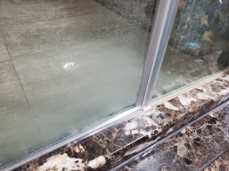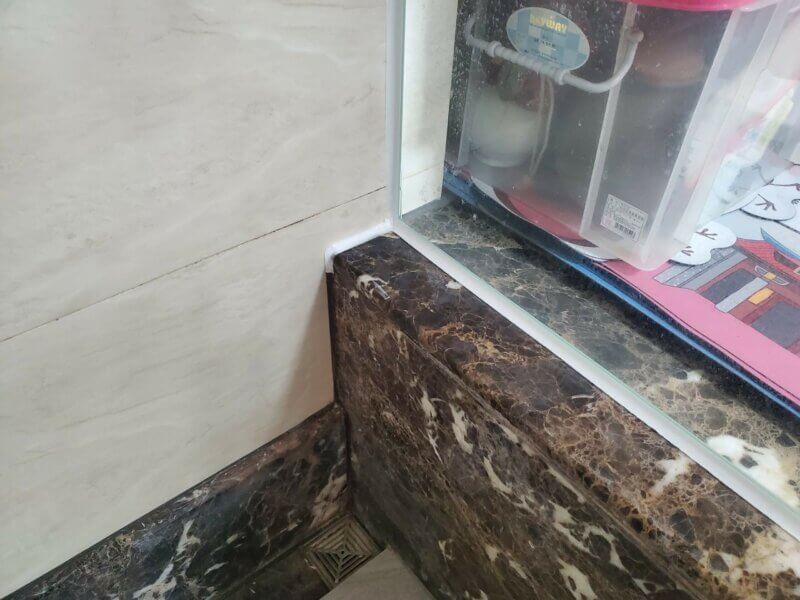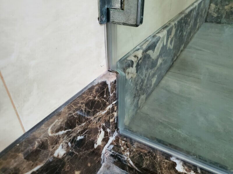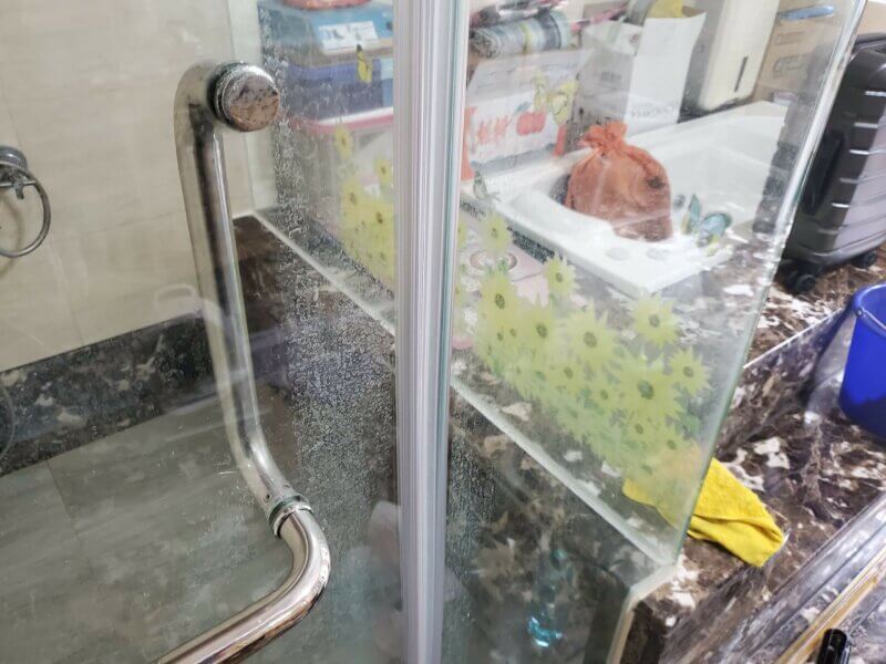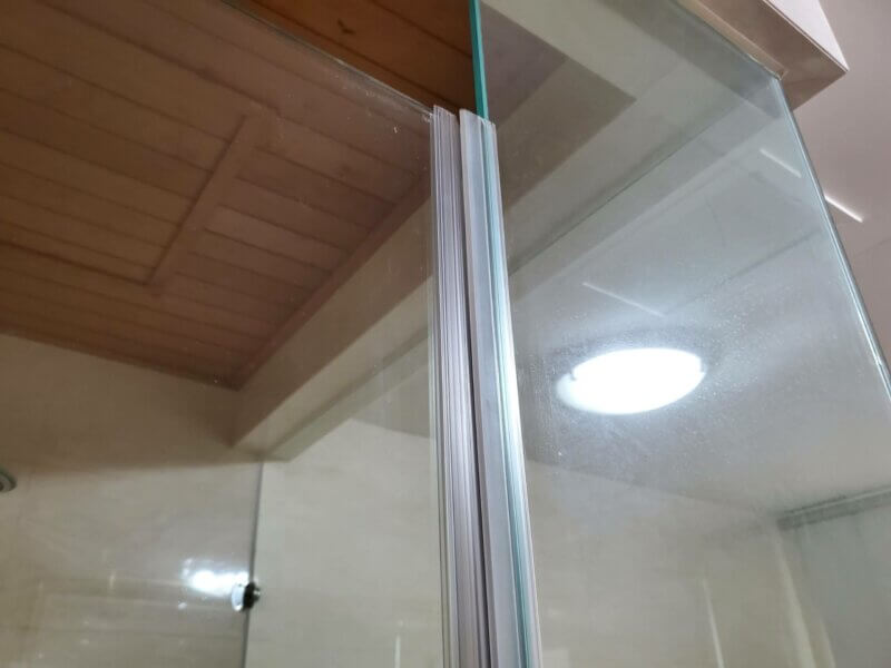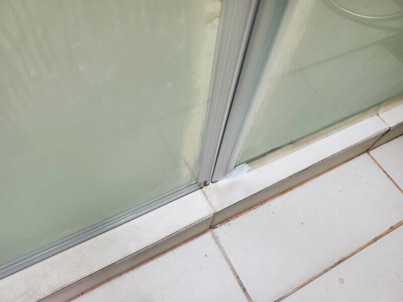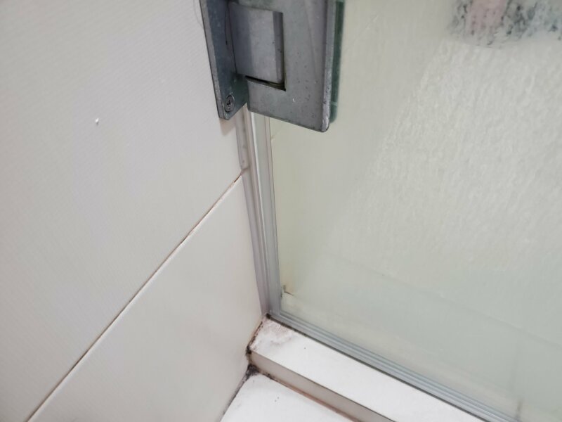 又一戶客戶家中浴廁的乾濕分離無框淋浴拉門有更新止水條與部分發霉矽利康刮除並重新施作的需求。