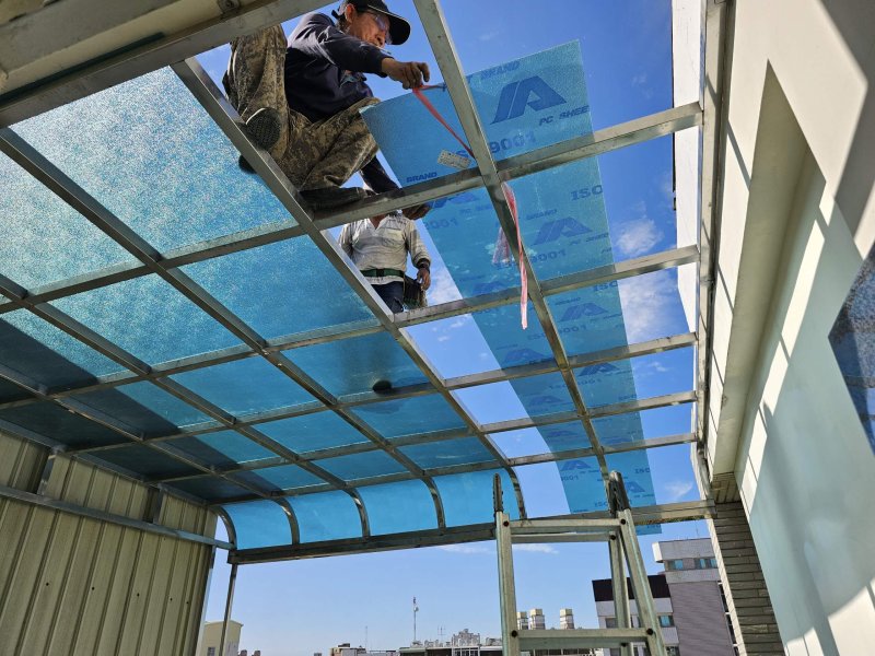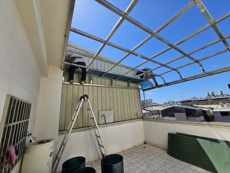 頂樓露臺不鏽鋼採光罩換板