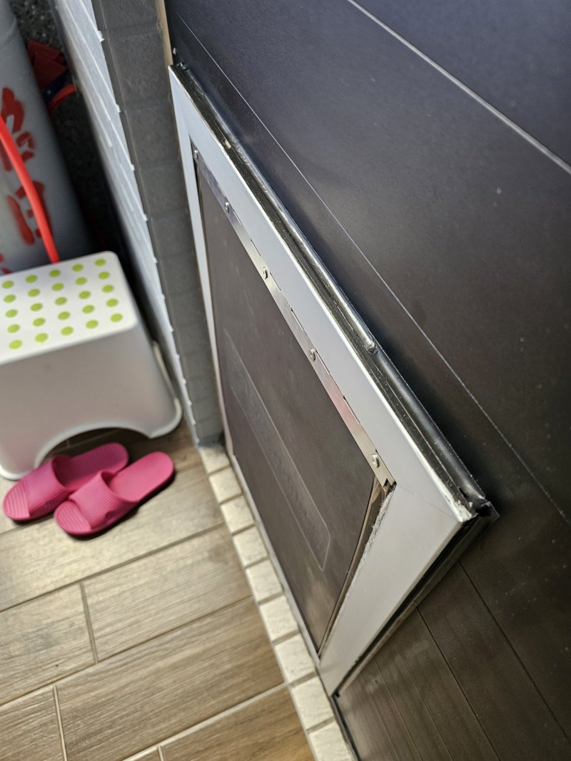 與紗窗邊框切齊的狗門安裝位置 台南市安平區永華十一街