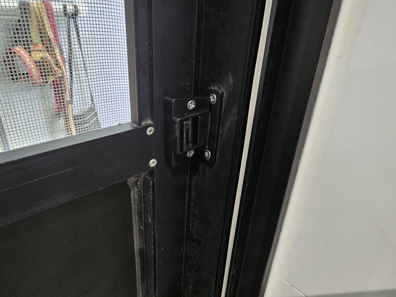 為了避免狗寶貝門將紗門推開,因此還另外加裝了一組自動紗門扣。