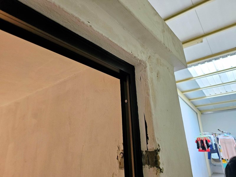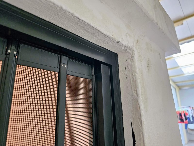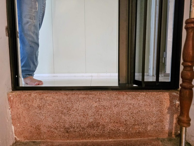 客戶的頂樓加蓋需要有防蚊蟲與微防盜功能的紗門,圖為百褶金紗安裝前相片。