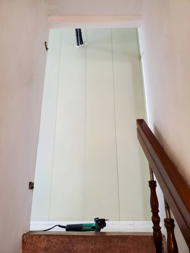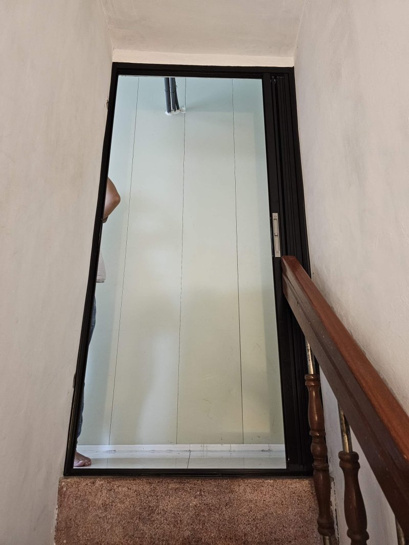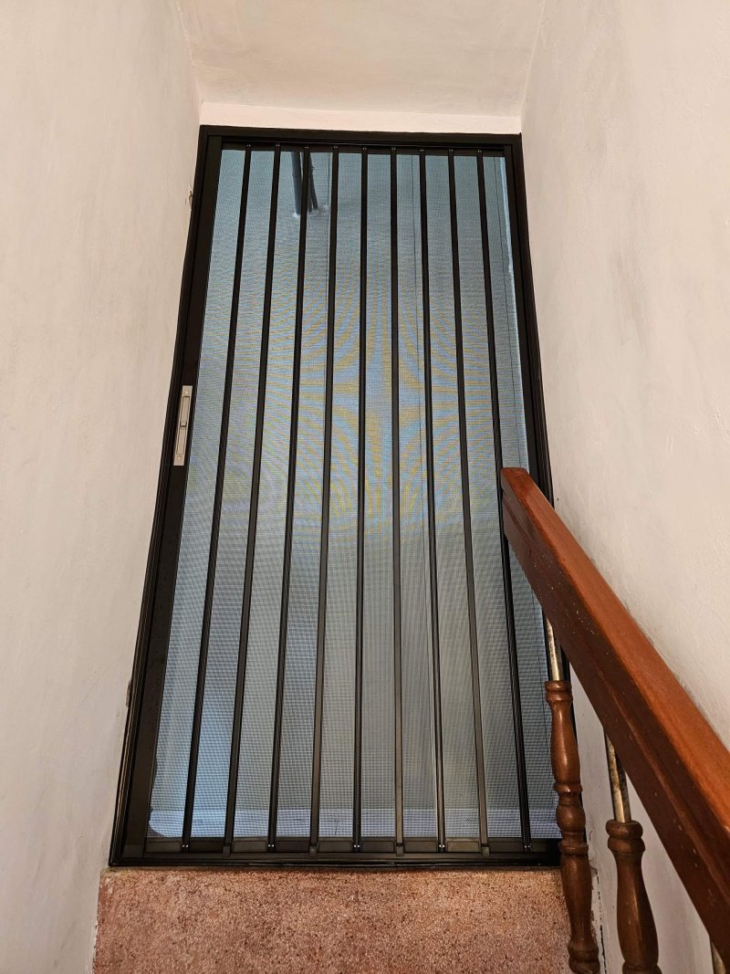 客戶想在通往頂樓加蓋門洞上加上一扇紗門,需求是可防蚊蟲,且能上鎖、簡易防盜。這在過往只能用上毫無質感可言的傳統推開式紗門來達成。不過從2024年開始,有同樣需求的朋友有新的選擇了!