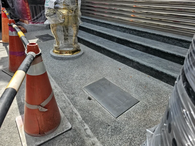 為了給信眾一個更平整、更安全的參拜空間,朝興宮合聖堂特別找來了「好室科技」合作,安裝了專門設計的「高強度不鏽鋼水溝蓋網」。