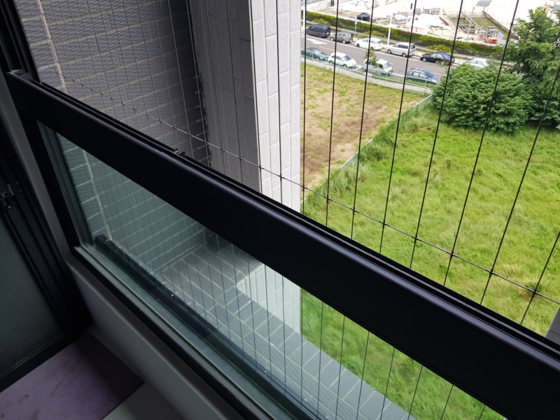 桃園自地自建案子暫告一段落後,便馬不停蹄地趕回台南,為的就是趕緊將屋主新交屋的房子設上最重要的一道防護,即”隱形鐵窗”。用了一個上午的時間,完成了主臥小陽台、兒童房橫拉窗及客廳陽台等三處的安全防墜設施。好室施工團隊能擔負此項重任與有榮焉,感謝子龍建設有限公司新建案永龍V&A2住戶的選擇!